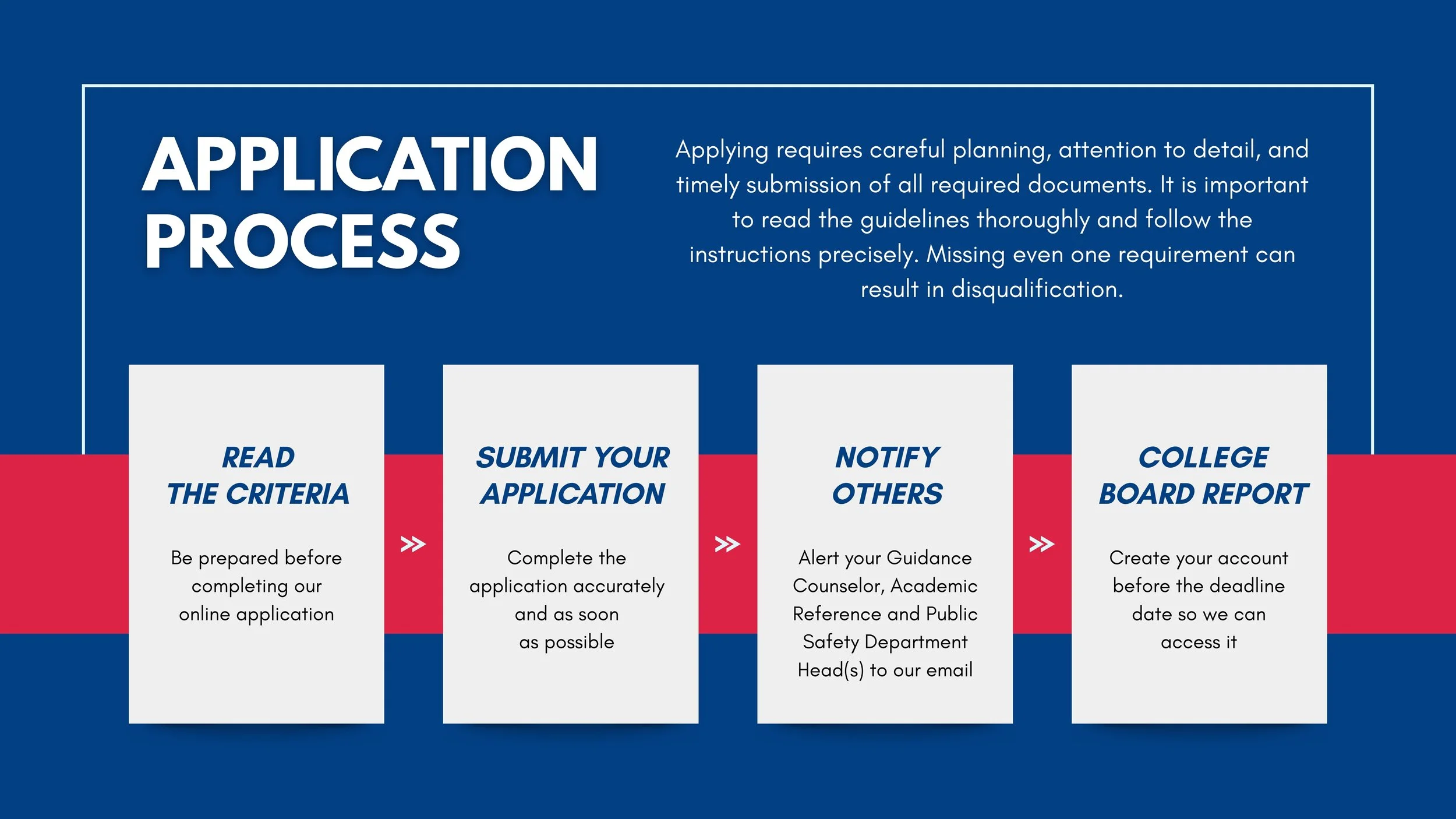 Children of personnel working in clerical or other non-related public safety duties are not eligible. This includes, but is not limited to: CERT Volunteers, Dispatchers, and Crossing Guards.